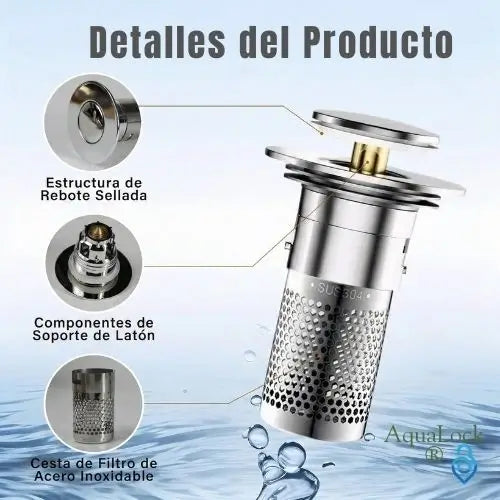 AquaLock® atrapa el cabello y los residuos antes de que bajen por el desagüe.